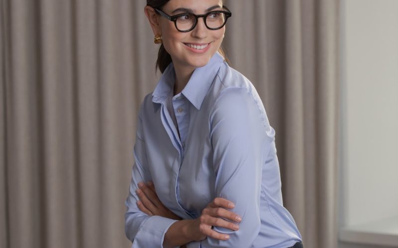 Täysin napitettuna kapean kynähameen tai räätälöityjen housujen kanssa, ehkäpä hienovaraisen kaulakorun pilkistäessä kauluksesta. Työnnä paita housuihin maksimaalisen ammattimaisuuden saavuttamiseksi.