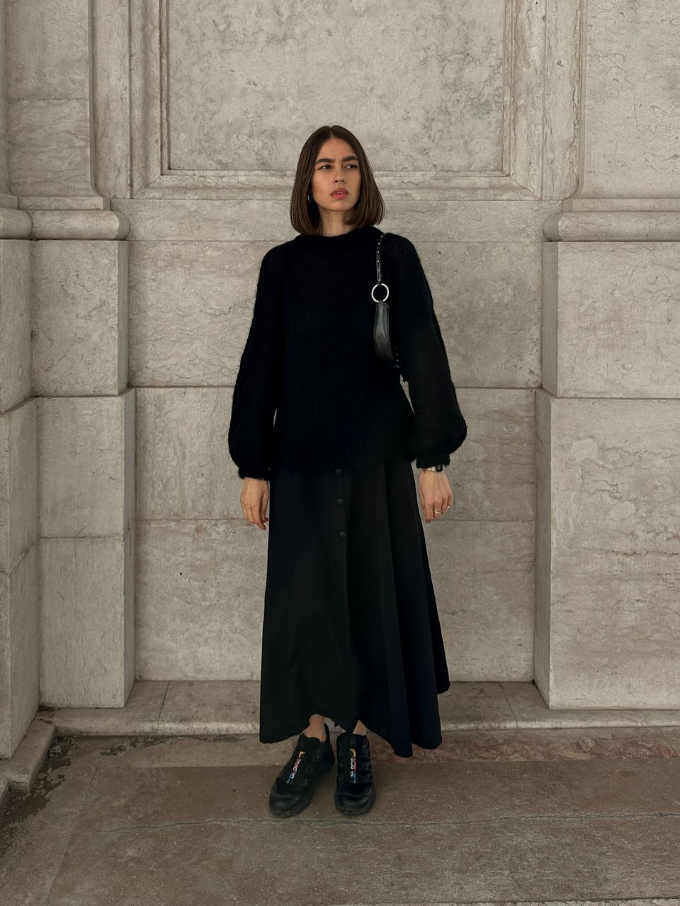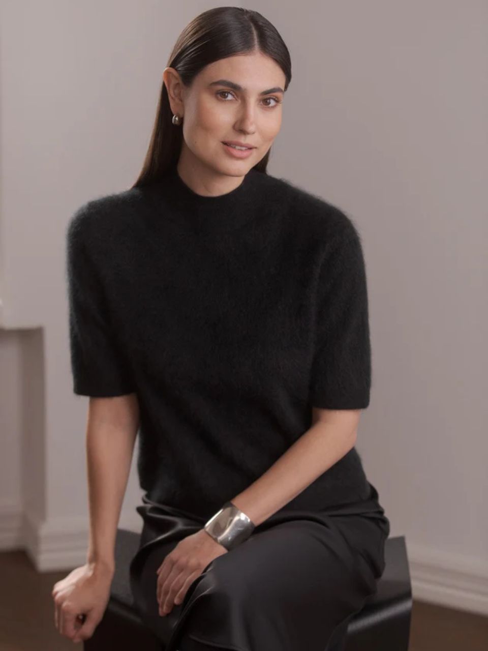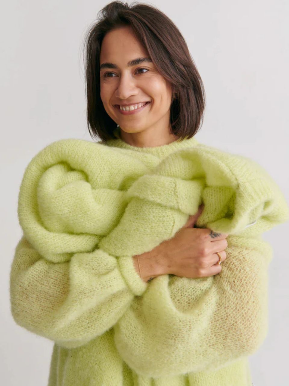 Mohairneule tuo välittömästi tekstuuria ja visuaalista mielenkiintoa yksinkertaiseen asuun. Paitojen päälle kerrostettuna se tuo asuusi syvyyttä ja yksinään puolestaan eleganssin tuntua.