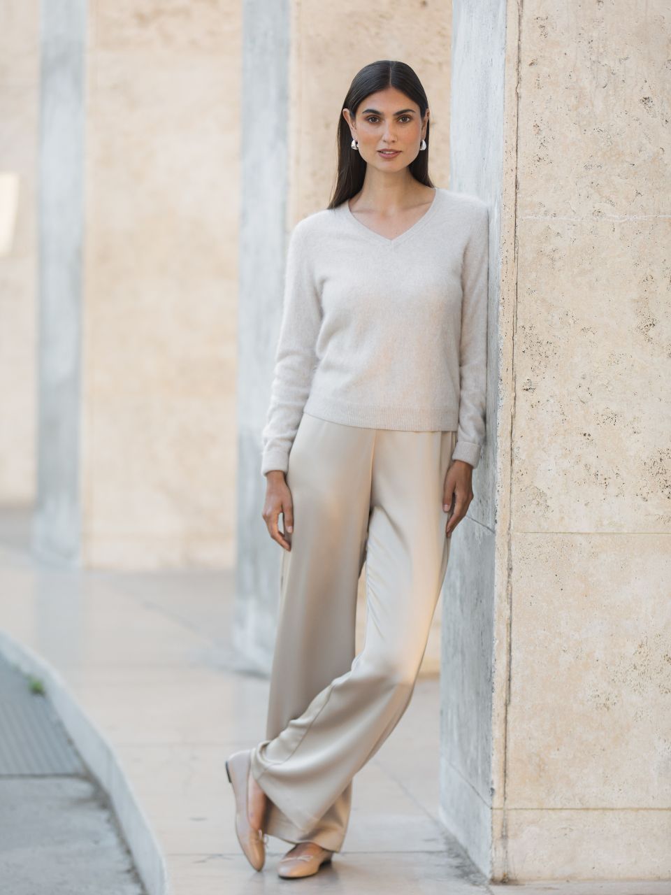 Kashmirneule on sijoitus. Kevyt, mutta uskomattoman lämmin, täydellinen viileisiin toimistoihin, iltatapahtumiin tai viikonloppuluksukseen.