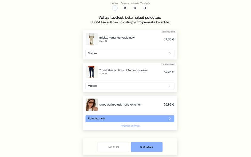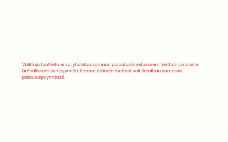 Jos haluat palauttaa tuotteita useammalta brändiltä, teethän kullekkin brändille oman palautusilmoituksen.