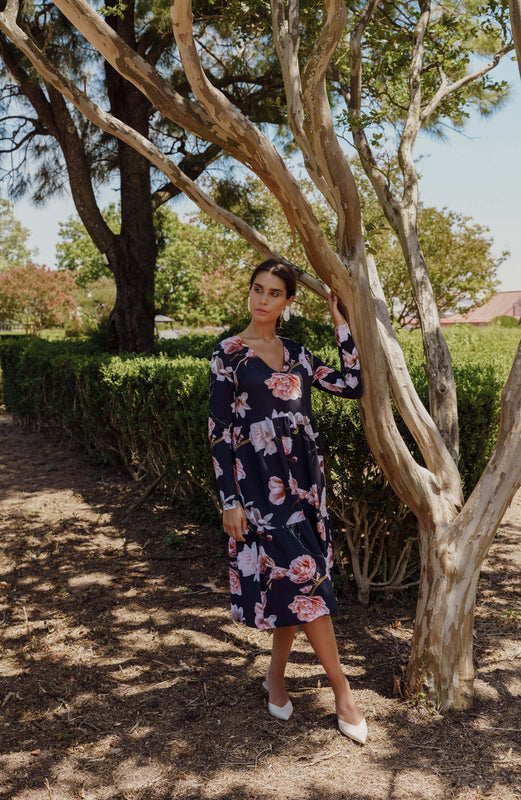Amélie Layered Dress Elysian on elegantti midi-pituinen mekko, joka on valmistettu pehmeästä, korkealaatuisesta Portugalista peräisin olevasta luomupuuvillasta. Sen rento mutta hienostunut leikkaus laskeutuu kevyesti imarrellen naisellista siluettia, jota korostaa sulava V-pääntie. Hienovaraiset kerrokset lisäävät syvyyttä ja monipuolisuutta, mikä tekee siitä sopivan sekä arkikäyttöön että erityistilaisuuksiin. Elysian-kuosi herättää henkiin japanilaisen puutarhan rauhallisen yöilmapiirin, jossa kukkivat magnoliat. Mukavuutta ja tyyliä tarjoamaan suunniteltu mekko on erinomainen valinta plus-kokoisille käyttäjille ja hienostunut vaatekaapin peruspilari.