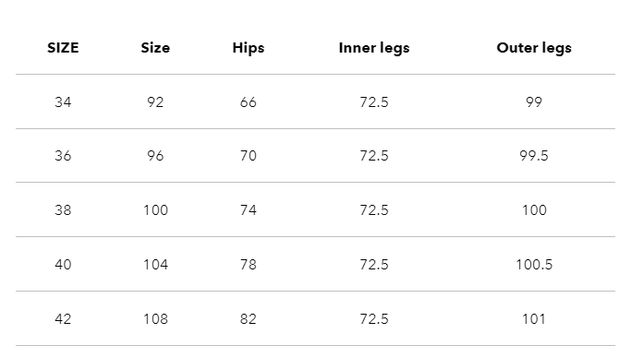 • Malli on 168 cm pitkä ja hänellä on päällään koko 34.
