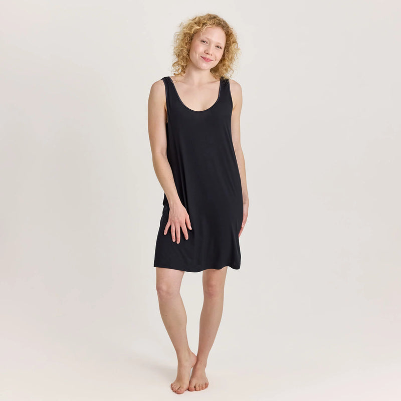 Bambuinen alusmekko on suunniteltu käytettäväksi neule- ja villamekkojen alla. Se vähentää sähköisyyttä ja auttaa villamekkoa laskeutumaan kauniisti. Pehmeä ja hengittävä materiaali tuntuu miellyttävältä ihoa vasten. Kevyt istuvuus tekee alusmekosta huomaamattoman mutta käytännöllisen lisän arkipukeutumiseen.