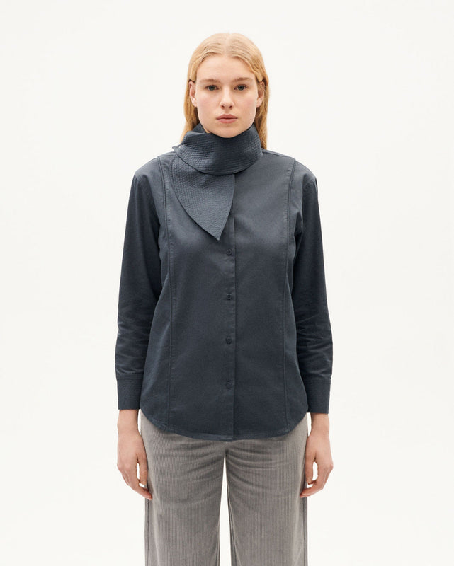 Georgia-grafiittipusero on valmistettu keskipainoisesta luomupuuvillasta, tarjoten mukavuutta ja hengittävyyttä rennossa istuvuudessa. Klassinen paitakaulus ja pitkät hihat, se sulkeutuu edestä hienovaraisilla peitetyillä napeilla hienostuneen ilmeen saavuttamiseksi. Kohokuvioidut sivusaumat lisäävät erottuvan kosketuksen tähän pitkään vaatekappaleeseen, yhdistäen hillityn eleganssin kestävään kankaaseen. Ihanteellinen niille, jotka etsivät ajattoman tyylin ja ympäristötietoisen laadun yhdistelmää.