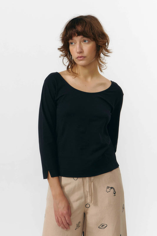 Pehmeä, hengittävä t-paita, jossa on 3/4 hihat ja pyöreä pääntie. Normaali istuvuus ja yksivärinen muotoilu tekevät siitä vaivattoman monipuolisen - vaatekaapin peruskappaleen, johon tartut yhä uudelleen ja uudelleen.
