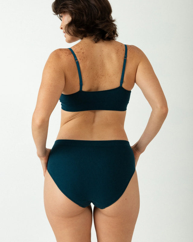 Siniset saumattomat korkeavyötäröiset alushousut, jotka on valmistettu superpehmeästä Ribbi-kankaasta, joka mukautuu vartaloosi ja tarjoaa lisää mukavuutta, venyvyyttä ja hengittävyyttä. Valmistettu 85 % kestävästä BCI-puuvillasta, 8 % polyamidista ja 7 % elastaanista - vegaaninen ja väriaineeton, ei sisällä haitallisia kemikaaleja, OEKO-TEX Standard 100 -sertifikaatti.