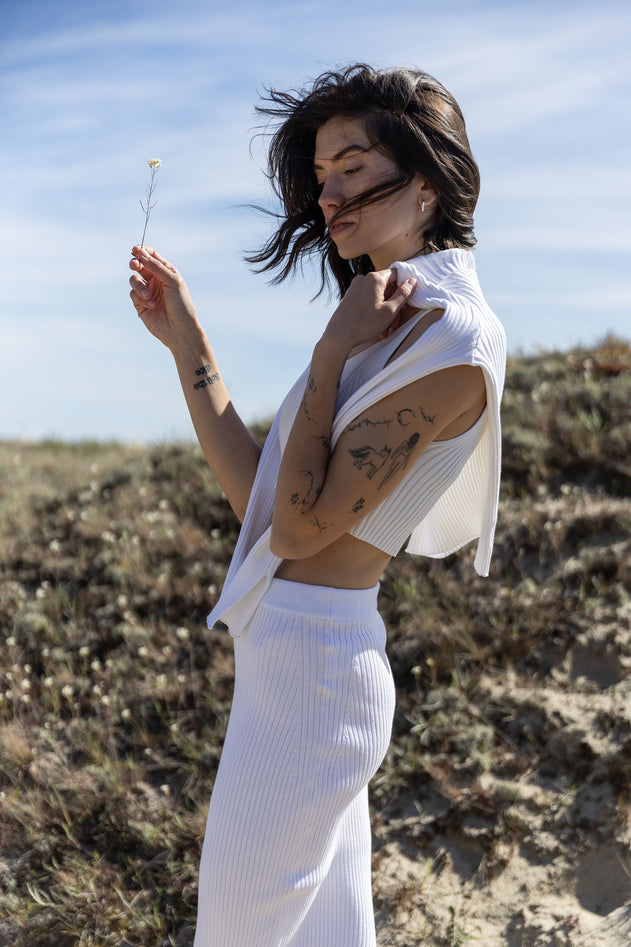 Madonna Reversible Ribbed-Knit Midi Skirt White