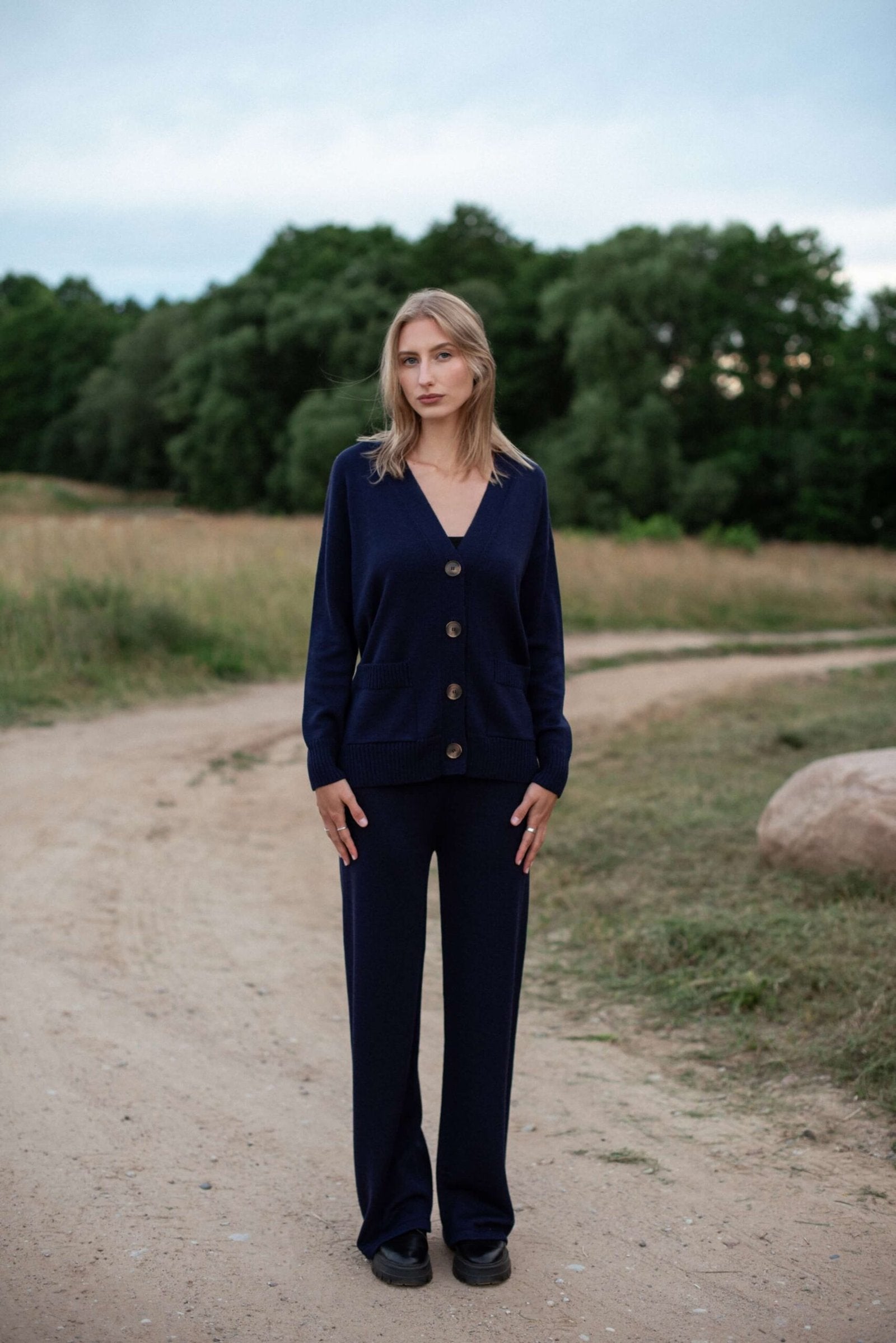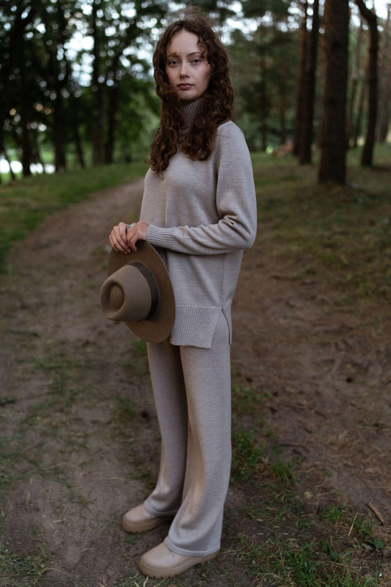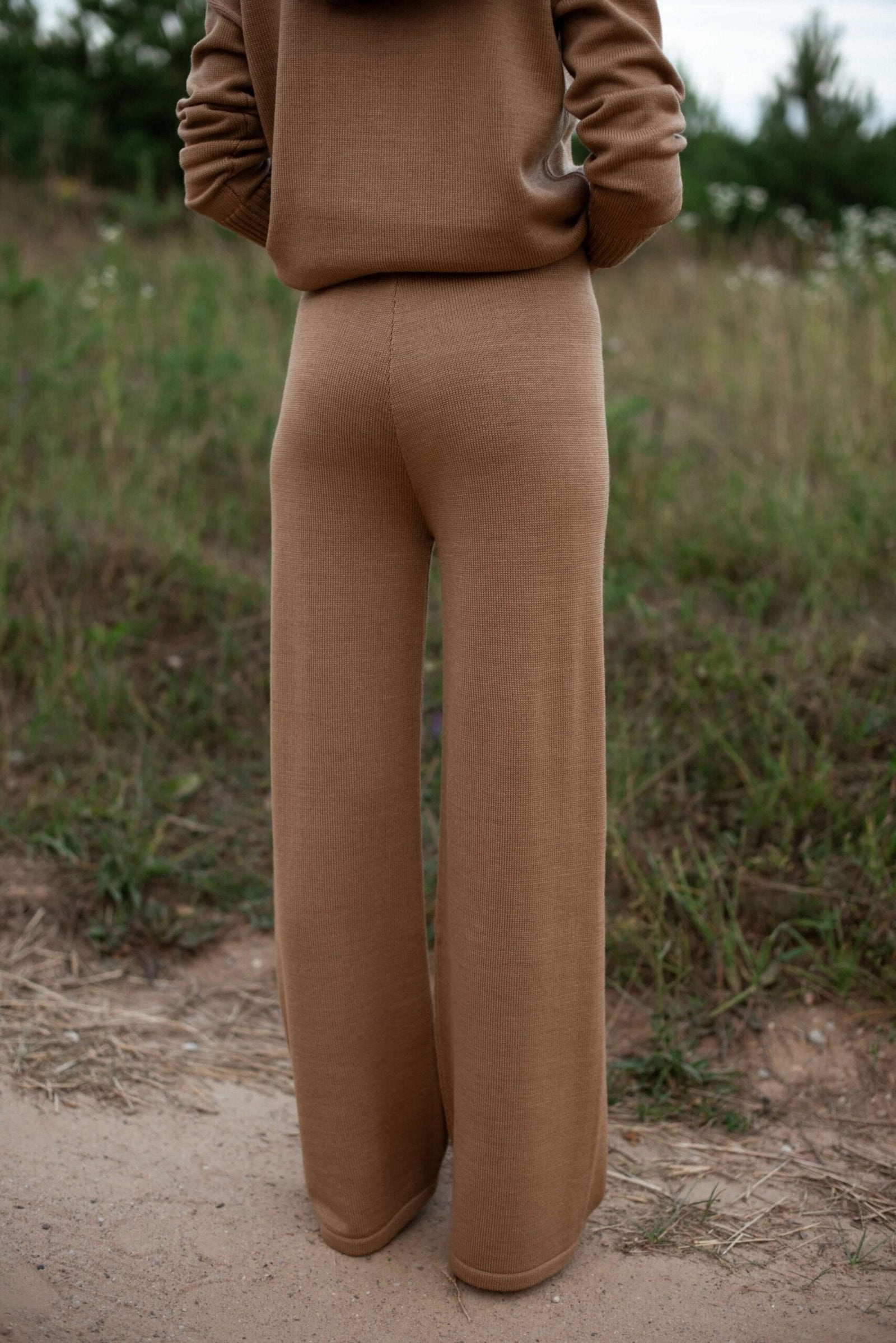 Knitted Merino Wool Pants and Cardigan Set Camel