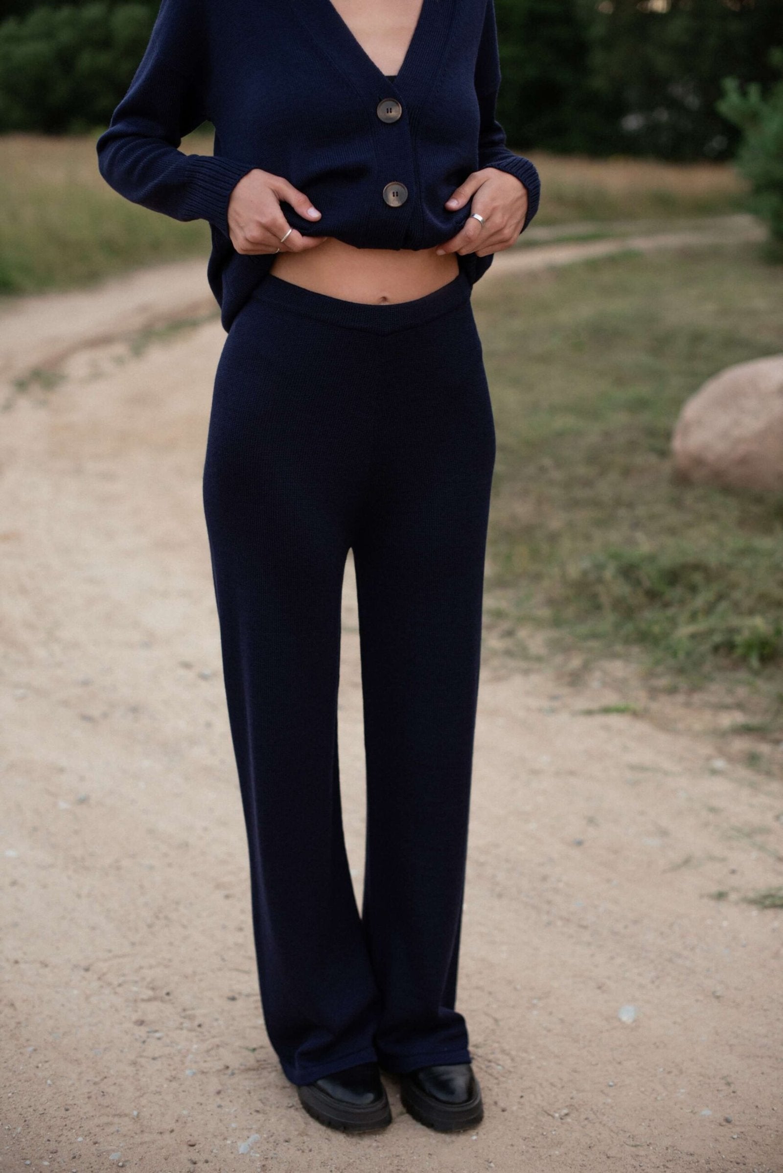 Knitted Merino Wool Pants and Sweater Set Black