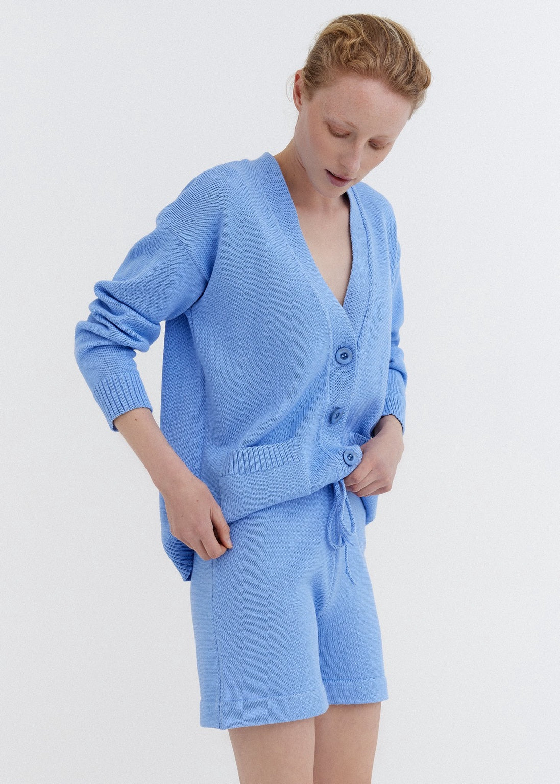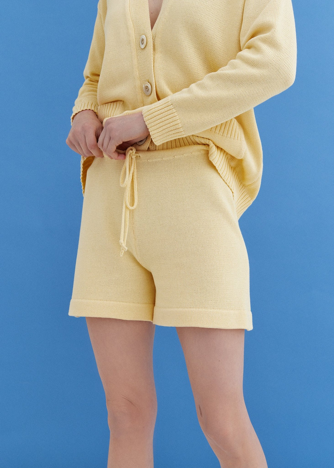 Knitted Merino Wool V-neck Sweater & Shorts Set