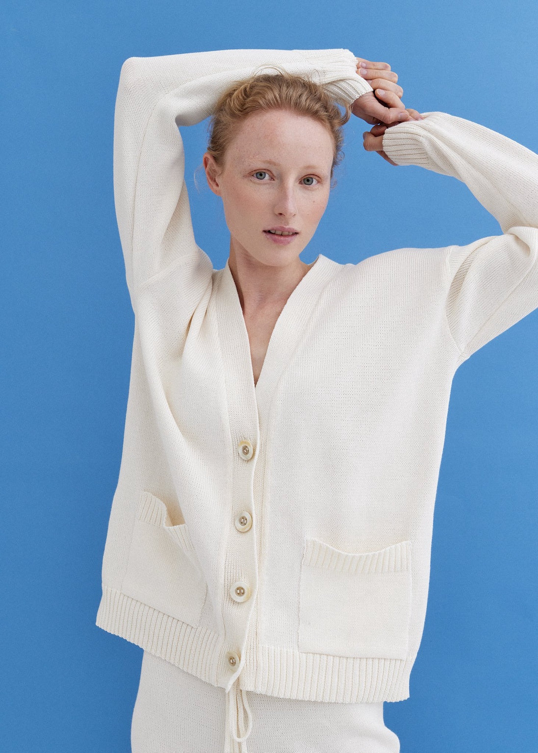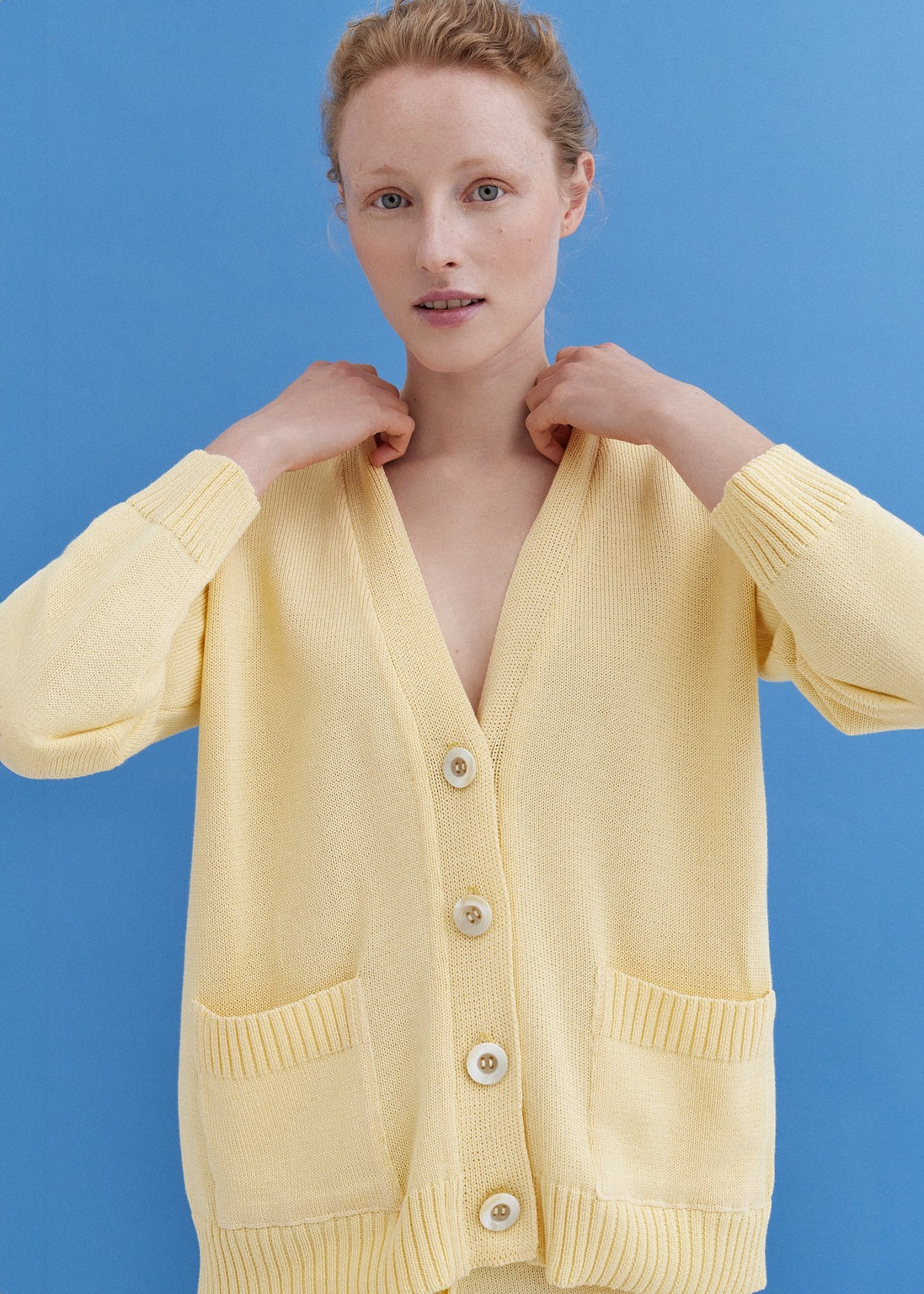 Tämä nappikiinnitteinen neuletakki yhdistää kestävän hienostuneisuuden ja poikkeuksellisen mukavuuden, ja se on taitavasti valmistettu puhtaasta 100% merinovillasta. Tyylikäs, minimalistinen siluetti ja perinteinen nappikiinnitys täydentävät saumattomasti sekä rentoja että hienostuneita asuja. Tarjoten luotettavaa lämpöä, kestävää laatua ja hienostunutta tyyliä, tämä neuletakki on perusvaatekaapin peruspilari, joka sopii ympärivuotiseen käyttöön.