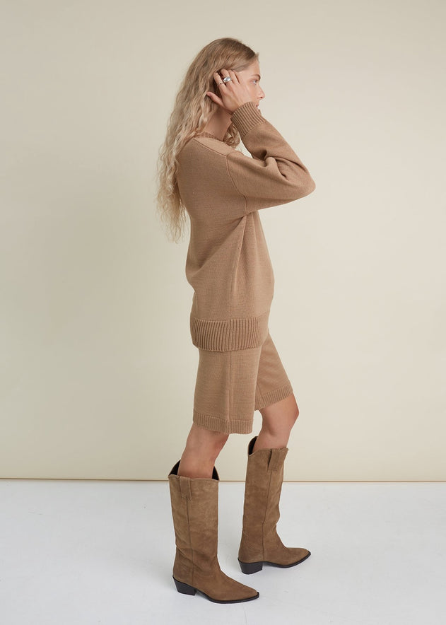 Knitted Merino Wool Oversized Sweater & Shorts Set