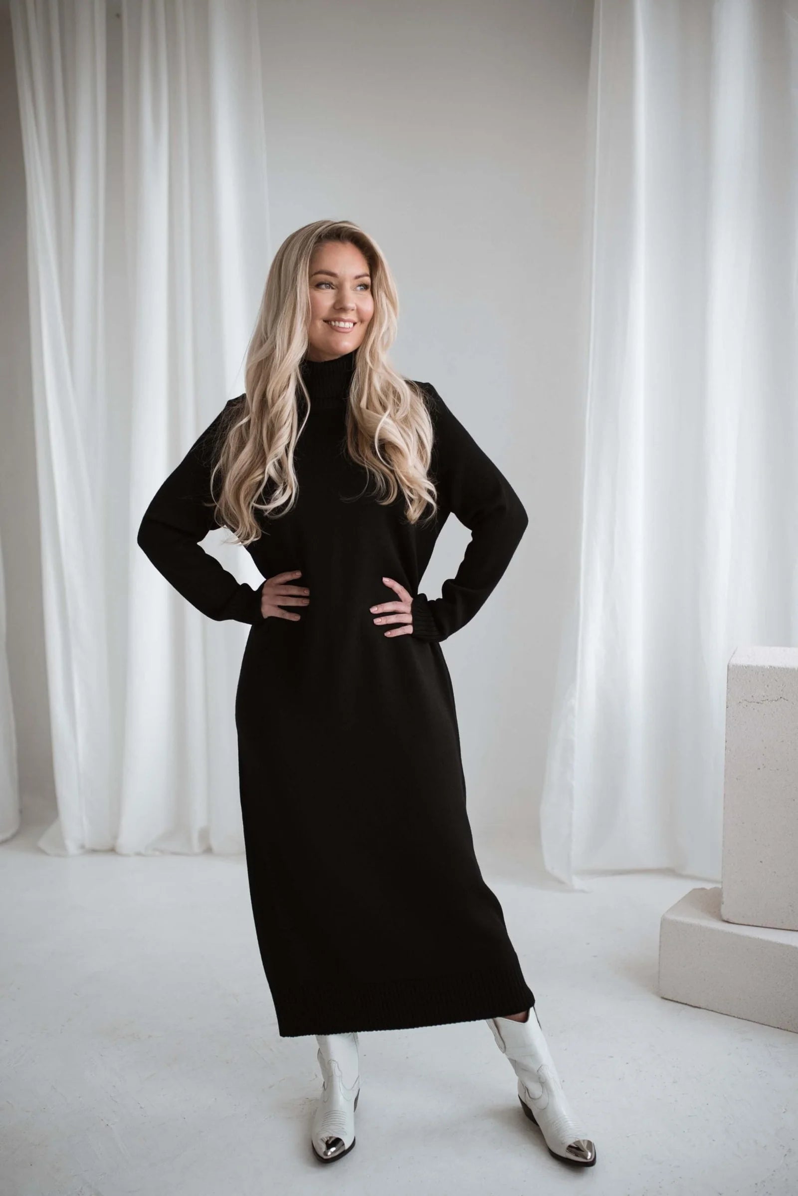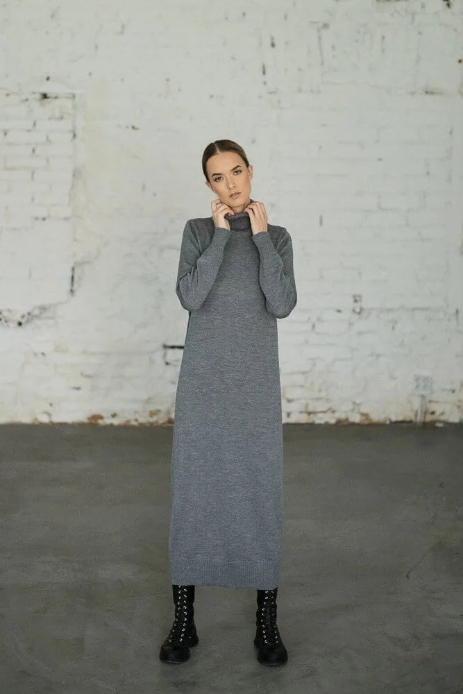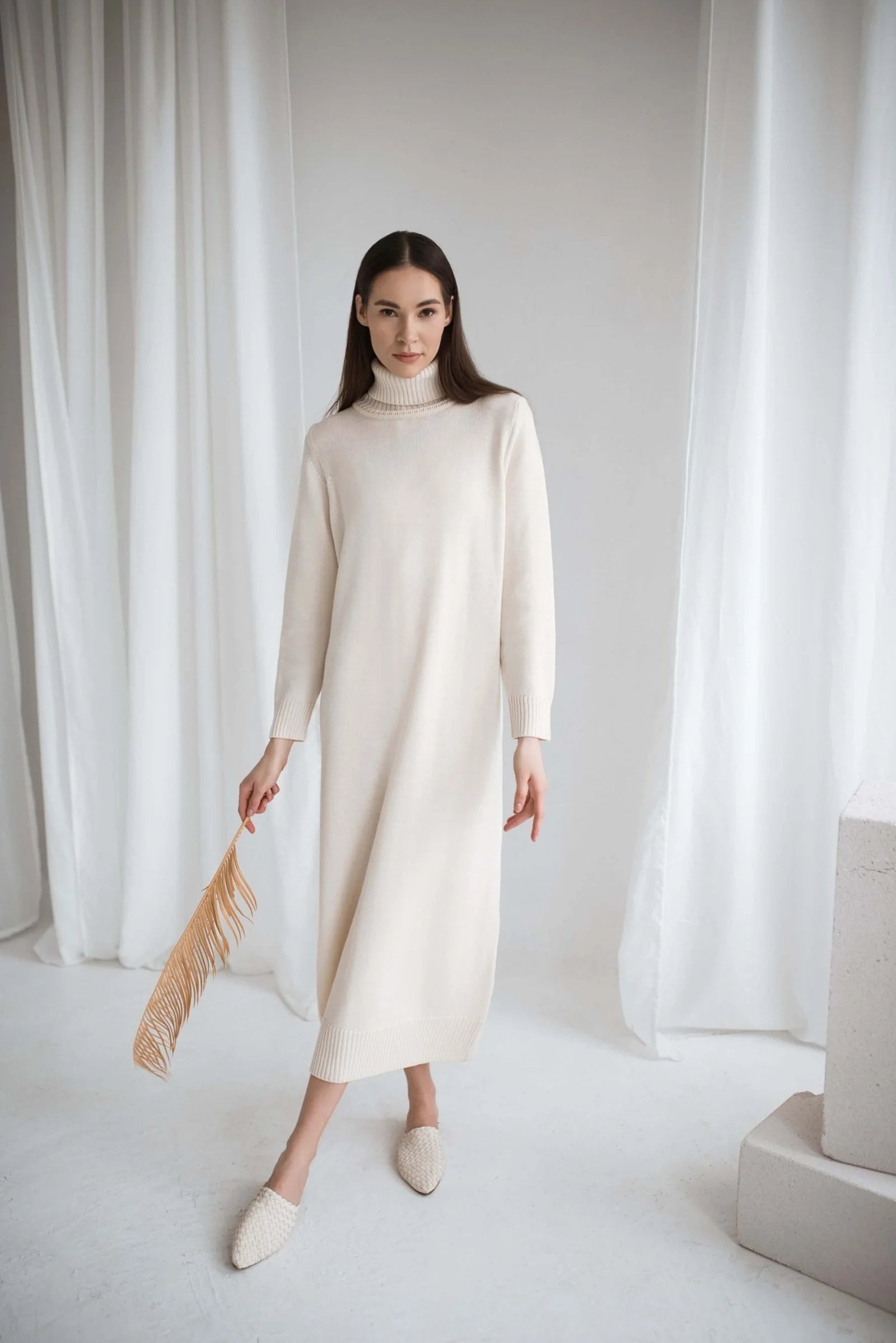 Turtleneck Sweater Dress Natural White