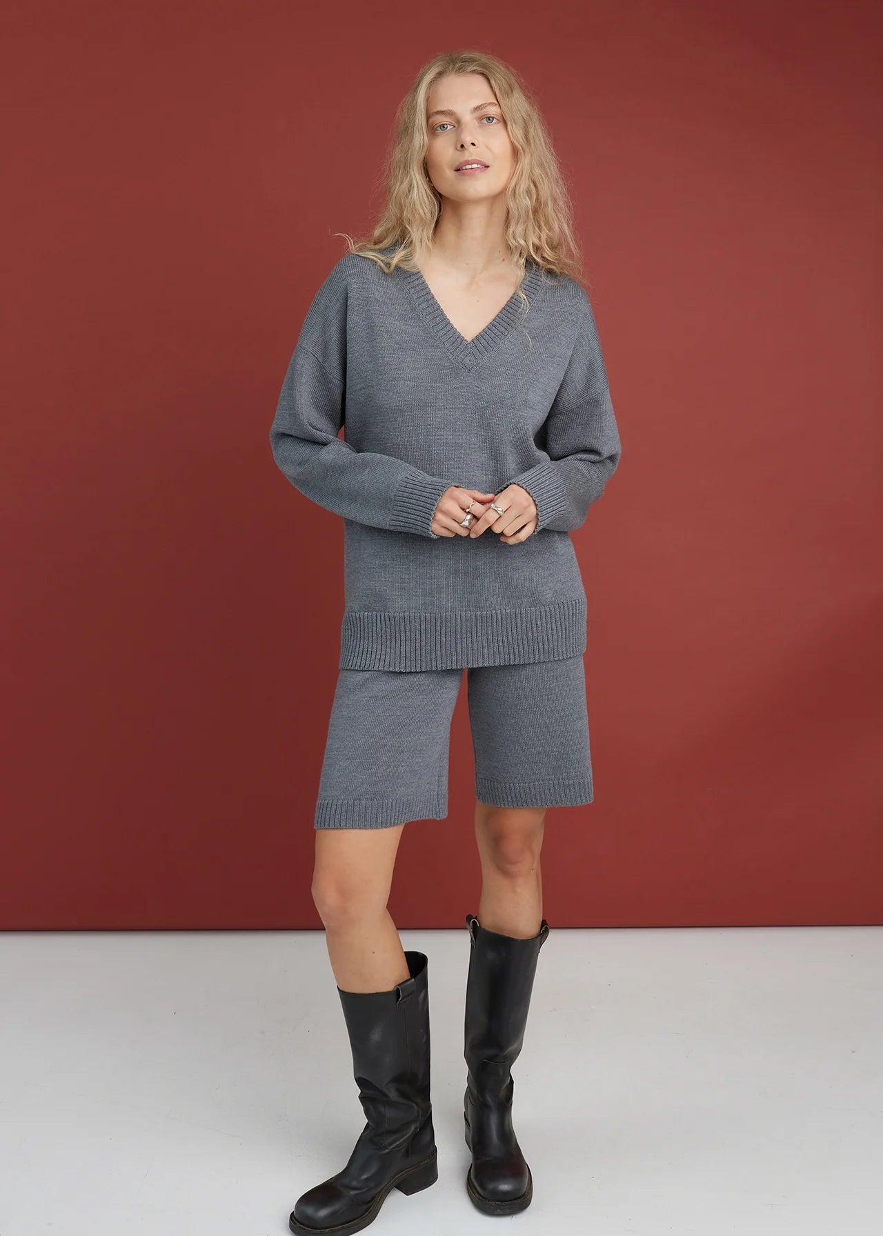 Knitted Cotton Shorts Sky