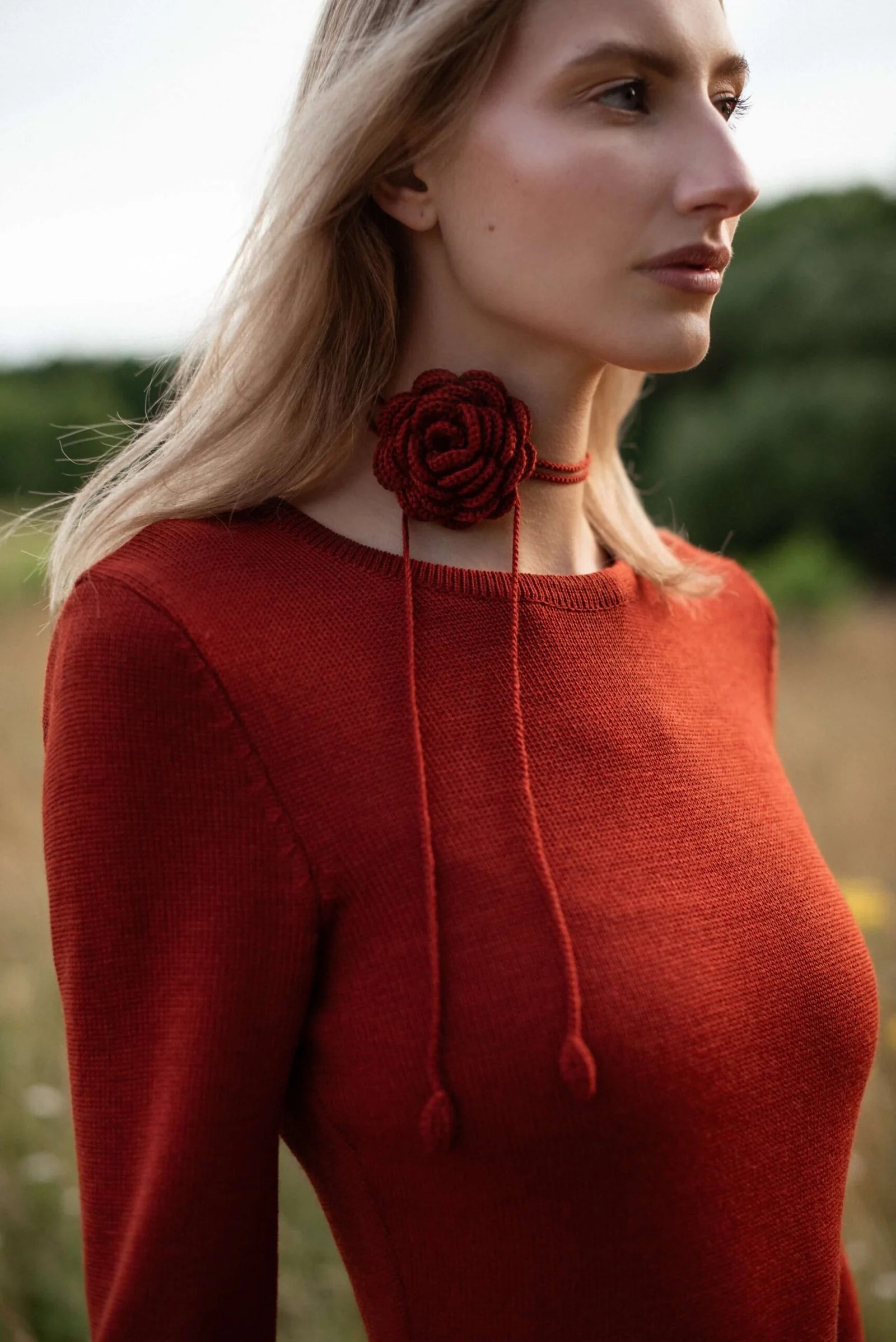 Tämä virkattu yläosa on käsintehty rintaliivi, joka piristää jokaista minimalistista asua. Tämä kappale on suunniteltu käytettäväksi mekon, paidan tai puseron päällä, ja voit helposti luoda joko yksivärisiä tai kontrastisia asuja riippuen haluamastasi vaikutuksesta. Kerrotaan tämä upea virkattu yläosa vaaleamman värin päälle, jotta kuvio tulee esiin, tai valitse vastaava väri vähemmän dramaattista ilmettä varten. Et jää huomaamatta tässä huomiota herättävässä päähineessä.