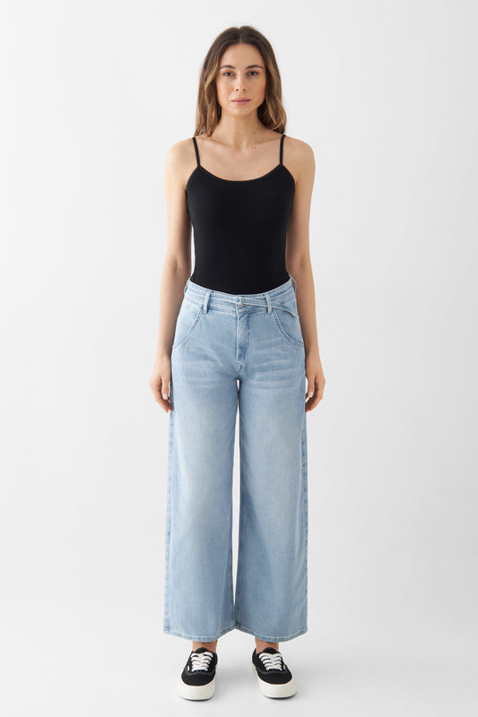 Blinkille on ominaista sen leveä ja lyhyt lahje. Se istuu korkealla vyötäröllä ja rennosti lantiolla. Pehmeä joustava materiaali tekee näistä farkuista erittäin mukavat ja täydelliset jokapäiväiseen käyttöön.