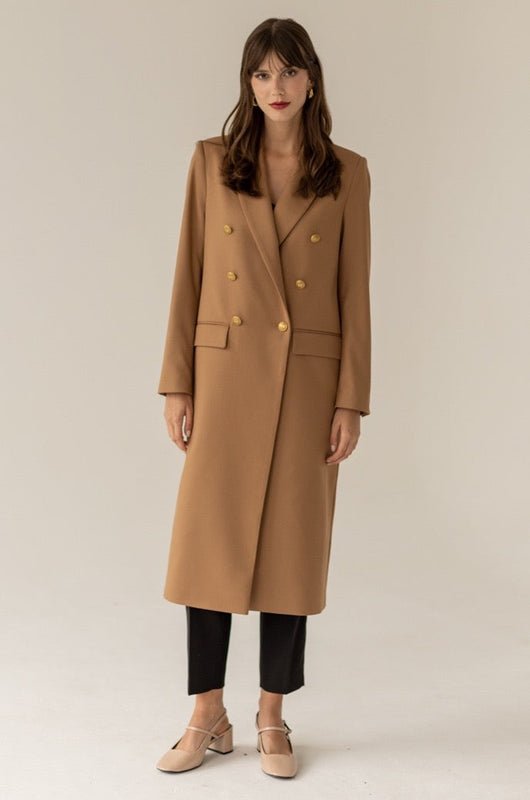 Kultaisilla napeilla varustettu trenssi on klassinen ja tyylikäs pitkä takki. Takissa on hieman väljempi leikkaus ja klassinen laivastonsininen kaulus. Takki on kaksirivinen vanhoilla kultanapeilla. Lisäksi siinä on napit hihoissa ja koristeellinen nappiläppä takana.