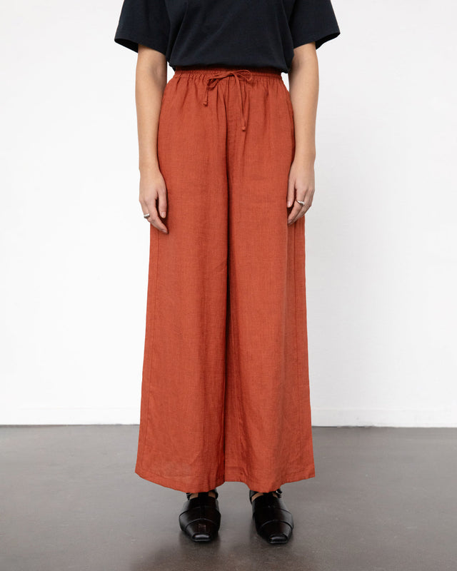 Asiantuntevasti valmistetut ja mukavuuteen suunnitellut Flared Pants Dusty Punainen ovat minimalistista tyyliä ja leveät lahkeet. Joustava vyötärönauha tarjoaa täydellisen istuvuuden kaikille vartalotyypeille. Kohota vaatekaappiasi tällä monipuolisella vaatteella, joka sopii mihin tahansa tilaisuuteen.