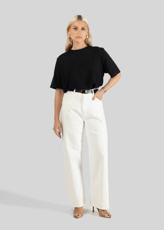 Suoralahkeiset farkut, joissa on keski-korkea vyötärö ja täysi pituus. Sivutaskut ja takataskut, joissa yksityiskohtainen brändäys takana. Nämä farkut on valmistettu 100% puuvillasta, keskipaksusta denimistä, mikä takaa niiden pitkäikäisyyden ja muodon säilymisen. Ei-joustava kangas.
