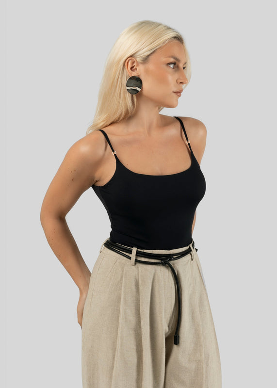 body yksityiskohtaisilla hihnoilla. Yläosa on kaksikerroksinen lisätuen ja mukavuuden vuoksi. Matala leikkaus alaosassa, jotta se on huomaamaton housuissa tai muissa alaosissa.