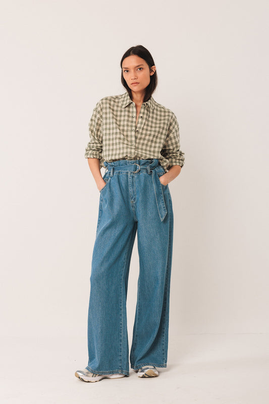 Tässä klassisesti leikatussa paidassa on hieman laskettu olkalinja, joka luo rennon mutta hienostuneen siluetin. Se on valmistettu langalla värjätystä puuvillasta ajattomalla Vichy-ruutukuviolla, tarjoten sekä kestävyyttä että hienovaraista tekstuuria. Kausittain välttämätön vaate, se yhdistää perinteisen tyylin ja nykyaikaisen mukavuuden.