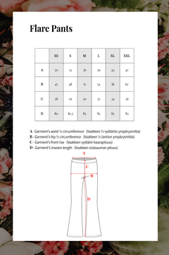 Laajalahkeiset Flare-housut, jotka on valmistettu kestävästä mutta joustavasta "ponte roma" -neuloksesta, tarjoavat terävän ilmeen ja ihanan pehmeän tuntuman. Nämä vartalonmyötäiset housut ovat leveälahkeiset ja korkeavyötäröiset. 5 cm leveä, joustava vyötärönauha takaa mukavuuden ja antaa housuille tyylikkään, räätälöidyn istuvuuden. Klassinen musta väri lisää ajattoman kosketuksen.