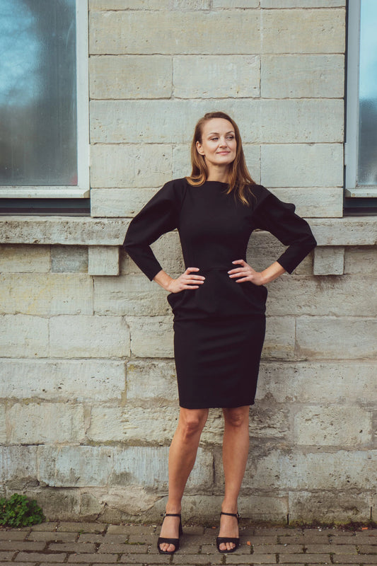 Natali on klassinen leikkausmekko, jossa on näyttävät hihat ja taskut. Mekon hame korostaa naisellista vartaloa, korostaen vyötäröä ja lantiolinjaa.