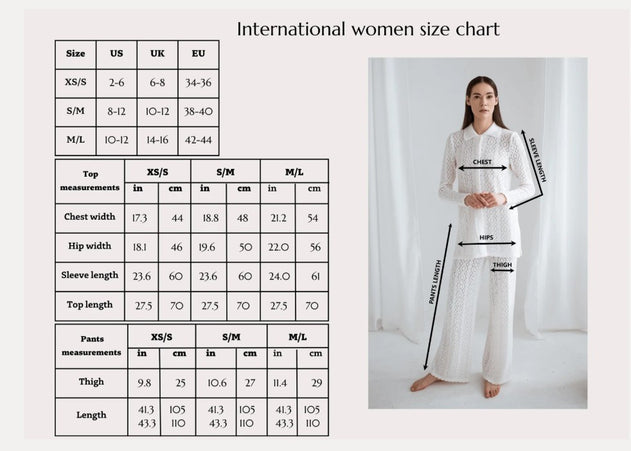 • Model Paulina (wearing a white and black tops) is 176 cm/5‘9 tall, chest 82 cm/32.2 in, waist 60 cm/23.6 in, hips 88 cm/34.6 in, wearing a size XS/S