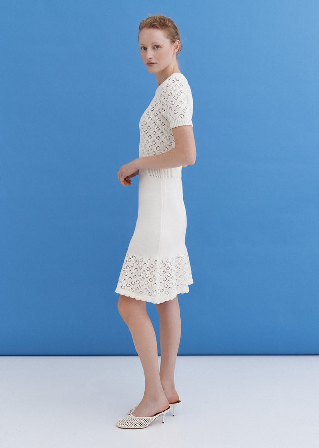 Knitted Cotton Lace Top and Skirt Set