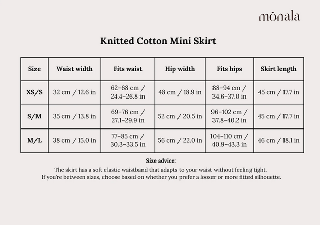Tämä neulottu minihame on tehty kesäillan rauhallisuutta ajatellen. Se hiljainen hetki, kun tuuli pehmenee, kaikki hidastuu ja tunnet olosi täysin rentoutuneeksi. Se on tunne tämän vaatteen takana – kevyt, vaivaton ja ajaton.
