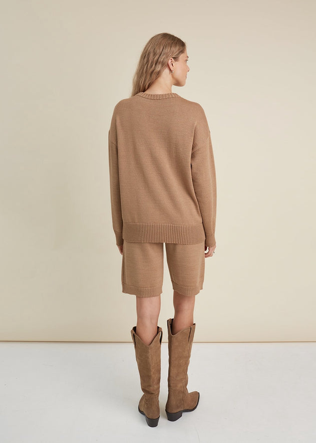 Knitted Merino Wool Oversized Sweater & Shorts Set
