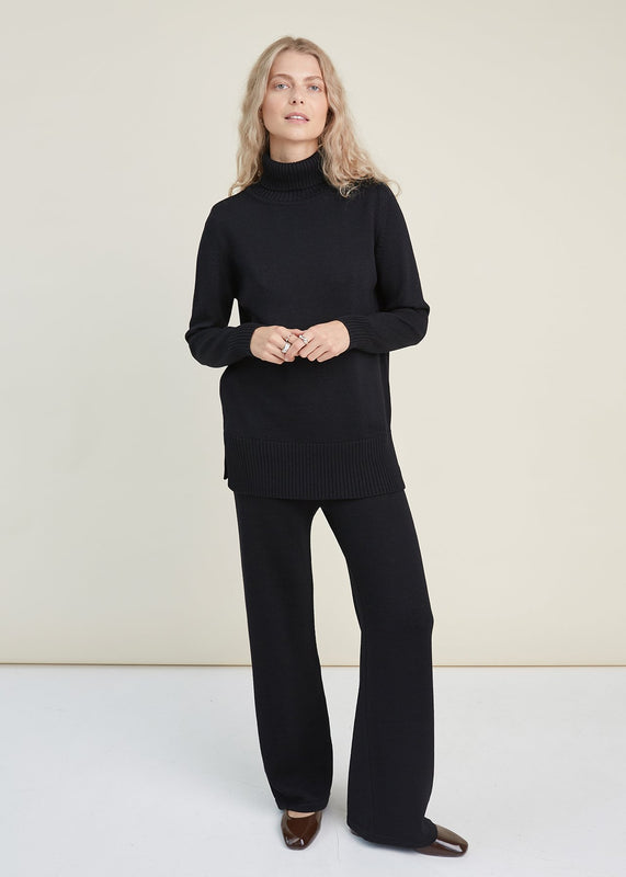 Knitted Merino Wool Pants and Sweater Set Black
