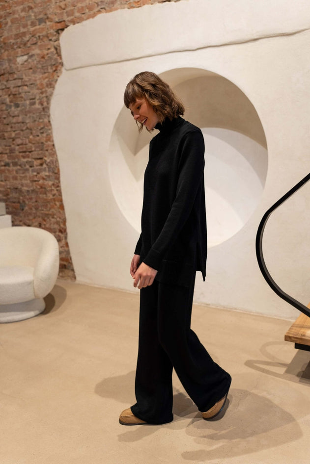 Olennaisen päivityksen vaatekaappiisi tarjoaa Monala:n 100 % neulottu merinovillasetti, jossa on tyylikäs muotoilu. Settiin kuuluu poolopaita sivuhalkioilla ja suorat housut. Se yhdistää täydellisesti mukavuuden ja vaivattoman tyylin.
