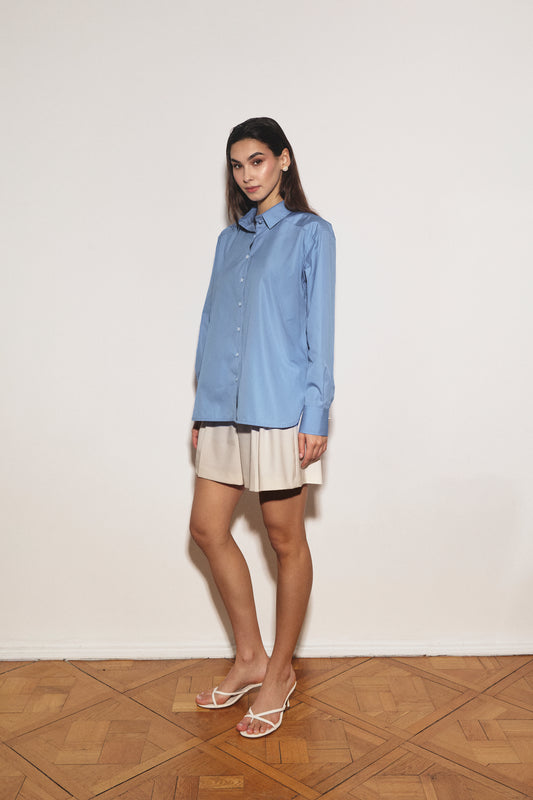 Loulou-paita yhdistää ajattoman tyylin ja hillityn tyylikkyyden. Se on valmistettu 100-prosenttisesta puuvillasta, jossa on sileä ja pehmeä tuntuma, ja siinä on rento istuvuus ja kevyesti lasketut olkapäät vaivattoman liikkumisen takaamiseksi. Helminappien yksityiskohdat kauluksessa ja hihansuissa lisäävät hienostunutta charmia, ja pyöristetty helma toimii sekä sullottuna että avattuna.