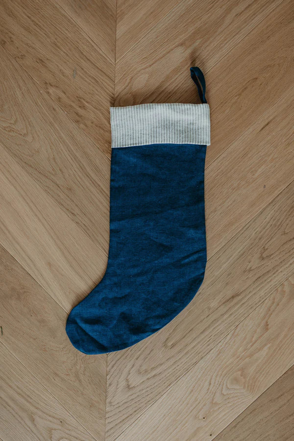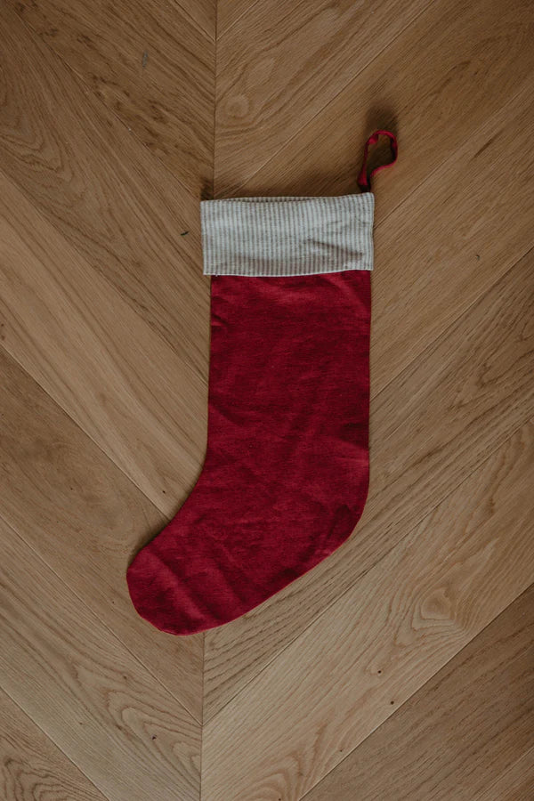 Linen Christmas Stocking With Striped Cuff