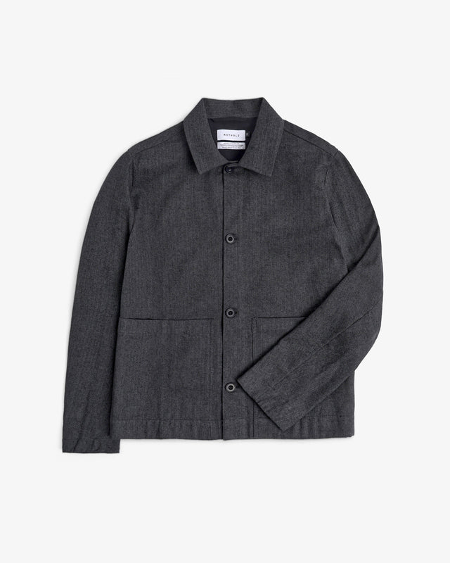 Tämä kevyt päällystakki, joka on valmistettu 100 % luomupuuvillasta hienostuneella kalanruotokuvioisella kudonnalla, tarjoaa minimalistisen mutta toimivan muotoilun. Sen suora, hieman laatikkomainen siluetti klassisella kauluksella ja suurilla paikkataskuilla yhdistää ajattoman yksinkertaisuuden hienovaraisiin työvaateyksityiskohtiin. Hengittävä ja pehmeä koskettaa, se sopii siirtymäsäihin ja toimii älykkäänä kerroksena paitojen tai neuleiden päällä tai jopa kevyenä bleiserivaihtoehtona. Käsintehty Portugalissa, tämä kestävä, vastuullinen takki yhdistää mukavuuden vastuulliseen käsityöhön ja kestävään tyyliin.
