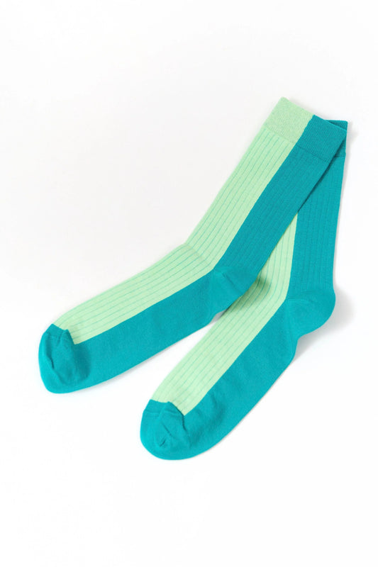 Puoliväliin ulottuvat kaksiväriset puuvillasukat Ribbi. Kangas tuntuu kevyeltä iholla ja siinä on helppo liikkua. Luotettava kappale, joka sopii arkirutiineihin.