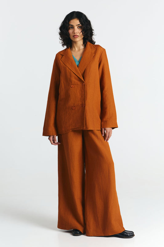 Valmistettu orgaanisen pellavan ja viskoosin sekoituksesta, kevyt muotoilu tekee siitä monipuolisen vaihtoehdon sekä kesäiseen toimistopukeutumiseen että rentoihin ulkoiluihin. Yhdistä Randa-housujen kanssa ja kohota se hienostuneemmaksi viimeistelyksi.