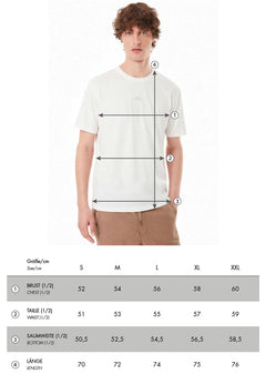 Valkoinen T-paita, jossa on kirjailtu polkupyörä rinnassa.