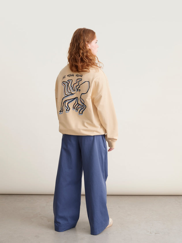 Tämä Messing Around Collegepaita beige tarjoaa rennon, unisex-mallin, joka on suunniteltu mukavuutta ja tyyliä varten. Siinä on erottuva Messing Around -printti takana ja Mainio -printti edessä, mikä yhdistää ainutlaatuiset grafiikat laadukkaaseen käsityöhön. Valmistettu 100 % luomupuuvillasta ja GOTS-sertifioitu, tämä Collegepaita varmistaa kestävyyden tinkimättä pehmeydestä tai kestävyydestä. Kaksoiskokovaihtoehto vastaa suurempaa kokoa, tarjoten monipuolisen istuvuuden eri vartalotyypeille. Ihanteellinen niille, jotka etsivät ympäristöystävällistä muotia rennolla, asiantuntevalla kosketuksella.