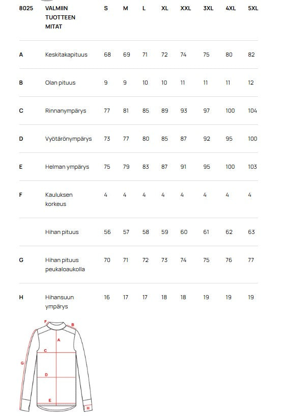 Eri vaatemerkkien mitoitus voi vaihdella keskenään. Yhden merkin koko M voi olla toisen merkin S. Useimmilla IVALO.COMissa myytävillä brändeille on oma kokotaulukko, jonka löydät tuotesivulta. Vertaa omia mittojasi merkin mittataulukkoon.