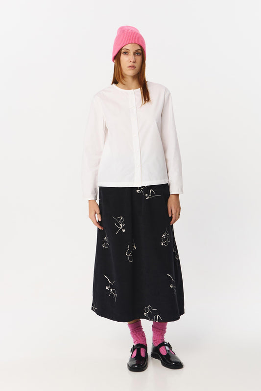 Tämä ei ole vain paita, se on kokonainen tunnelma. Valmistettu orgaanisesta puuvillapopliinista, tämä pitkähihainen nappipaita erottuu pyöreällä kauluksellaan ja irrotettavalla Peter Pan -tyylisellä ylimääräisellä kauluksellaan, joka on hienovaraisesti kirjailtu edestä ja sidottu pehmeällä rusetilla. Vegaaniset corozo-napit viimeistelevät ilmeen luonnollisella tavalla. Käytä Mios-paitaa kauluksella tai ilman, mielialastasi riippuen. Joka tapauksessa se tuo romanttista särmää arkipukeutumiseen.