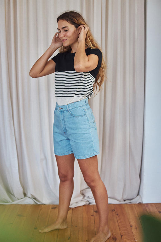 Valmistettu pehmeästä orgaanisesta slub-kankaasta, jossa on hienovaraisia langalla värjättyjä raitoja, Molene sisältää hihattoman muotoilun taitetuilla hihansuilla, edustaen ajattoman kestävää tyyliä. Tämä säännöllisesti istuva vaate esittelee myös huomaamattoman kirjotun valas-emblemimme, joka ilmentää TWOTHIRDS:n laatua ja eetosta.