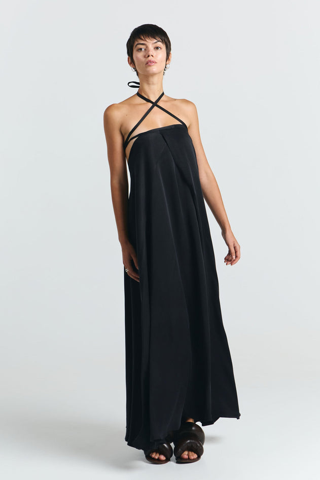 Multiposition Long Cupro Dress Black