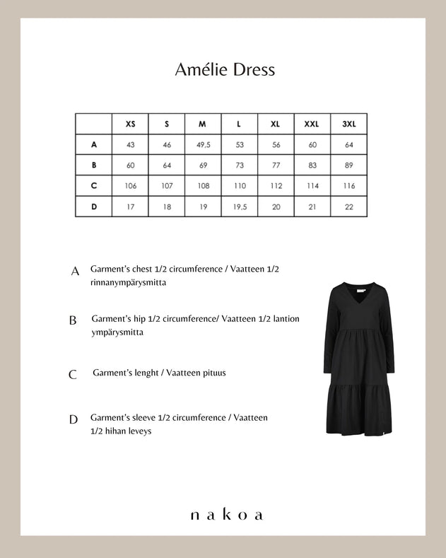 Tämä upea midi-pituinen kerrostettu mekko on valmistettu luomupuuvillasta. Sen vaivattoman tyylikäs muotoilu laskeutuu kauniisti ja siinä on imarteleva V-pääntie. Kerrostetut yksityiskohdat lisäävät viehättävän kosketuksen, korostaen mekon eleganttia siluettia. Amélie-mekko on korkealaatuinen, ajaton vaatekappale, joka on todellakin vaatekaapin välttämättömyys.