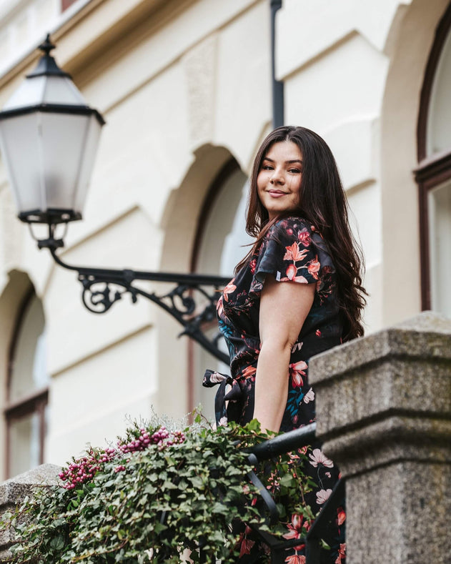 Annika-mekko on naisellinen katseenvangitsija. Keinotekoinen kietaisutyyli ja monipuolinen solmittava vyötärö varmistavat täydellisen istuvuuden jokaiselle vartalotyypille, kun taas imartelevat muotoilulinjat luovat kauniin siluetin, korostaen kaikkia oikeita paikkoja. Hameessa ja hihoissa on virtaavia, aaltoilevia laskoksia, jotka laskeutuvat kauniisti kevyen kankaan kanssa, herättäen seikkailun tunteen Etelä-Euroopan mukulakivikaduilla tai iloisten kesäpäivien aikana vastaleikatun nurmikon päällä. Mekon vuori lisää huolettoman kosketuksen.