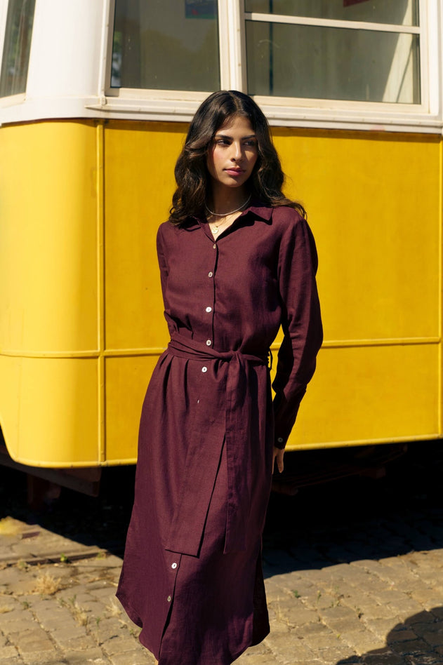 Chloe Linen Dress Merlot