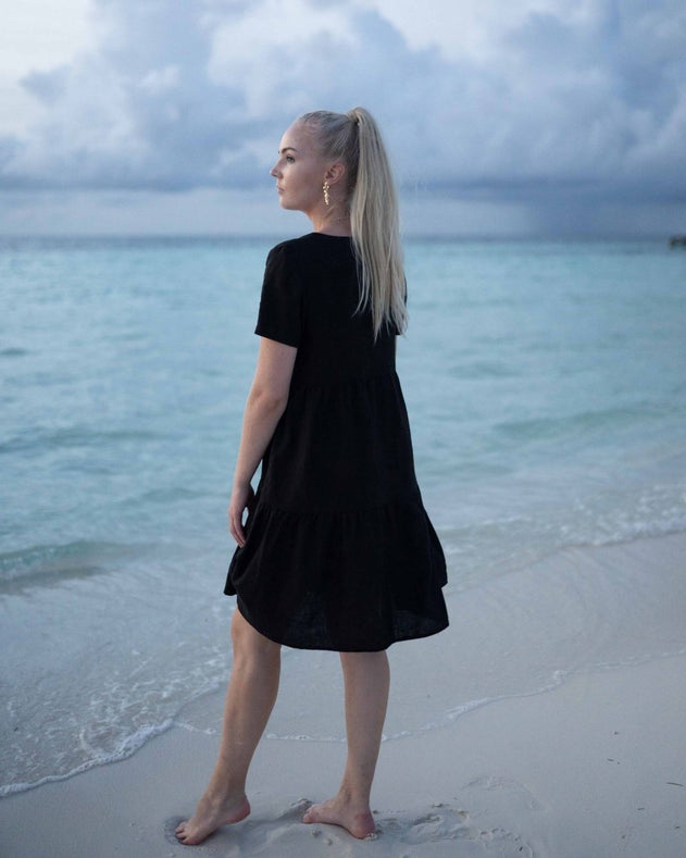Linen Layer Dress Black