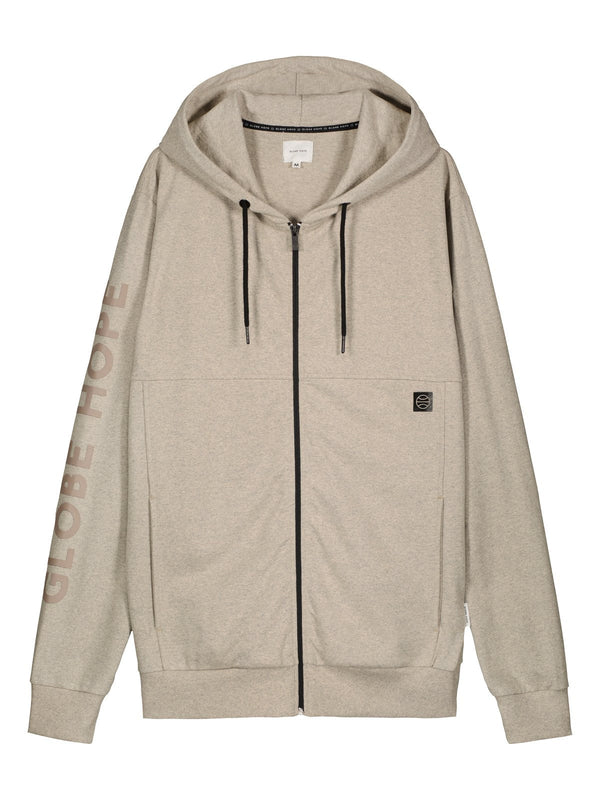 DOLOMIITTI huppari on valmistettu 100 % kierrätetystä langasta. Siinä on "Globe Hope" 3D-painatus hihassa ja pystysaumat taskuilla.