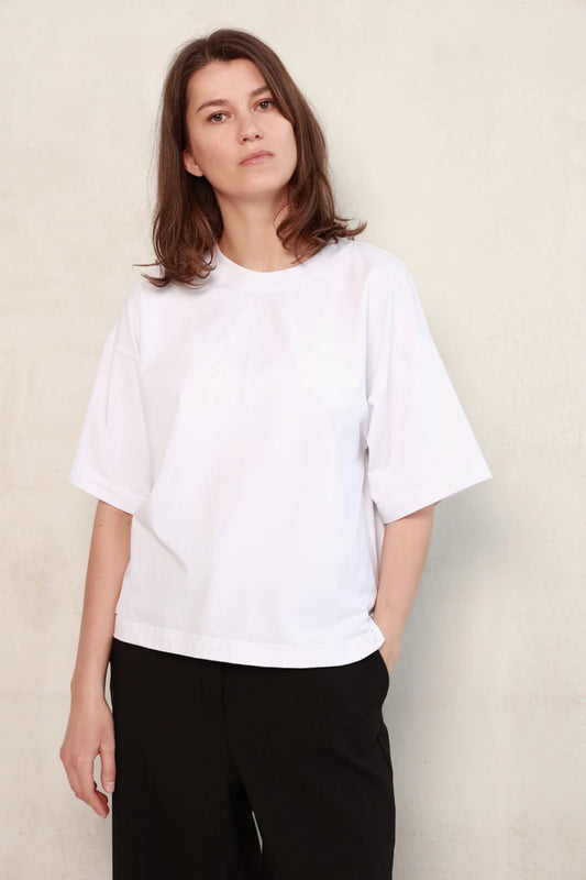 Line is an oversized T-shirt in a minimalist cut with wide sleeves. The material is öeko-tex certified jersey fabric.